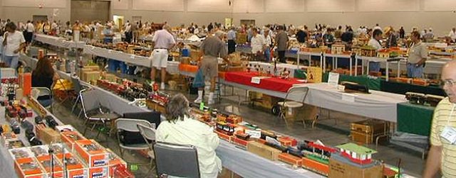Christopher Keppel operates Richard Keppel's floor train layout at the Convention Hall