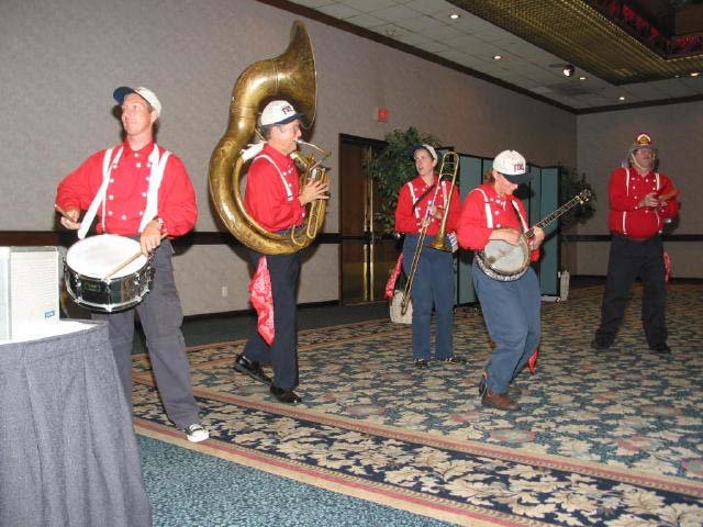 MC Harold points out something happening at the back of the room - its sounds like Dixie Land Jazz music