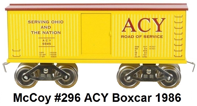 cars utilized the regular McCoy all-steel construction with industrial enamel finish and silk screened artwork. The box