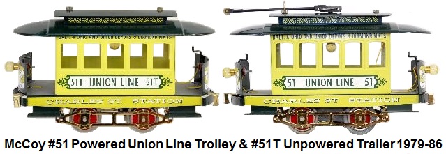 unpowered, but could be motorized. McCoy Manufacturing ceased building reproduction Lionel 2⅞" gauge and